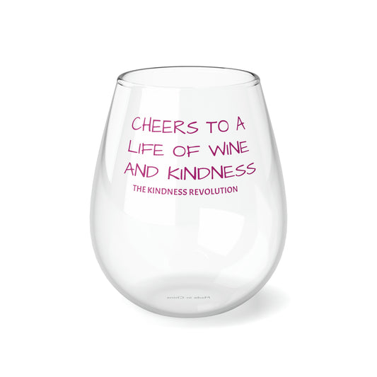 "Cheers to a life of Wine and Kindness" Stemless Wine Glass, 11.75oz